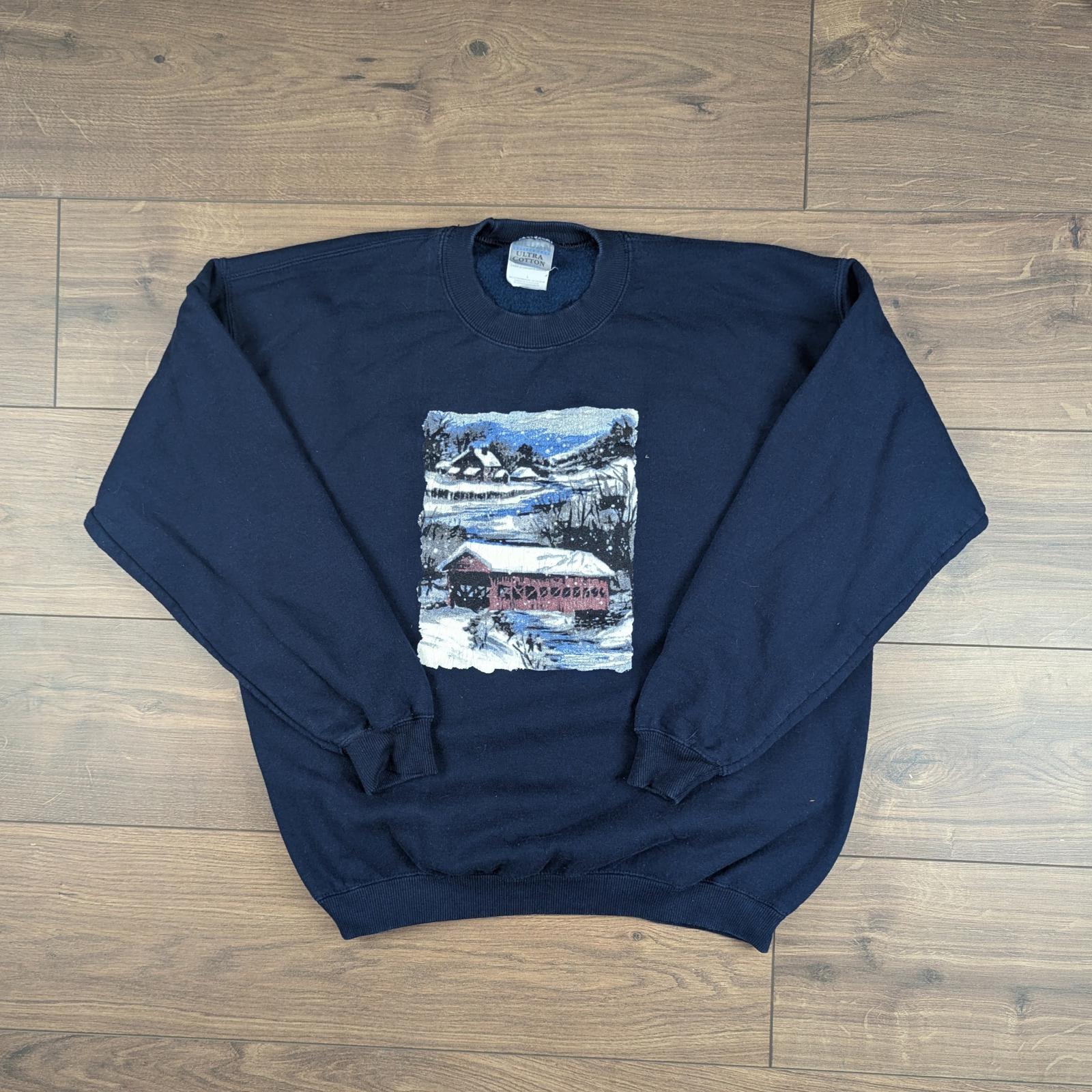 Navy 00's Vintage Graphic Winter Christmas Jumper Sweatshirt Size L