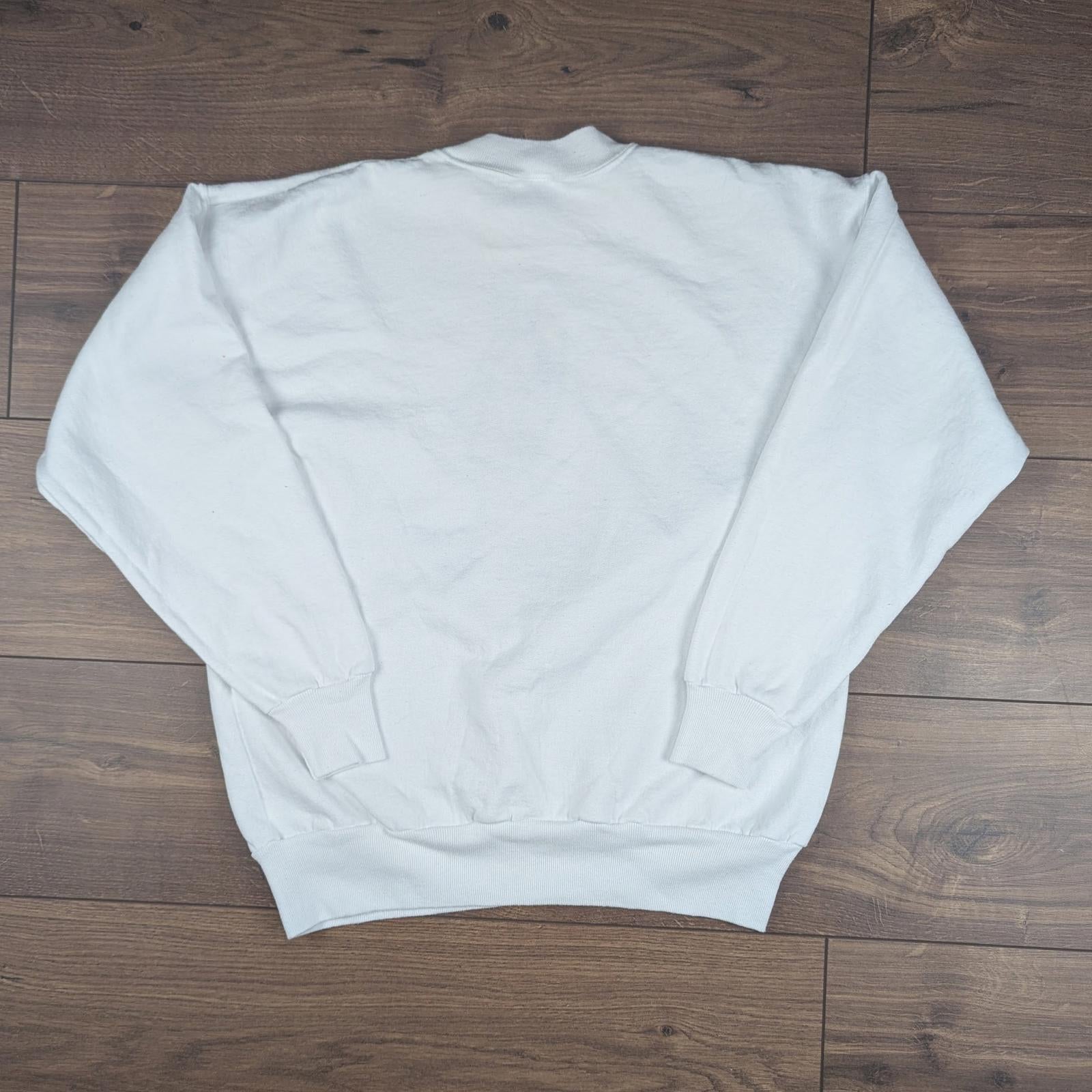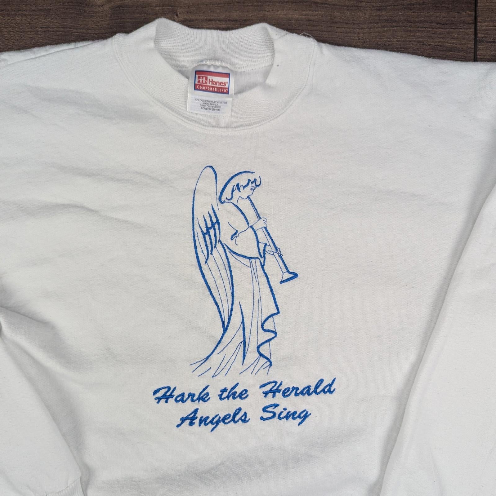 White Vintage 90s Embroidered Angels Christmas Jumper Sweatshirt Size M